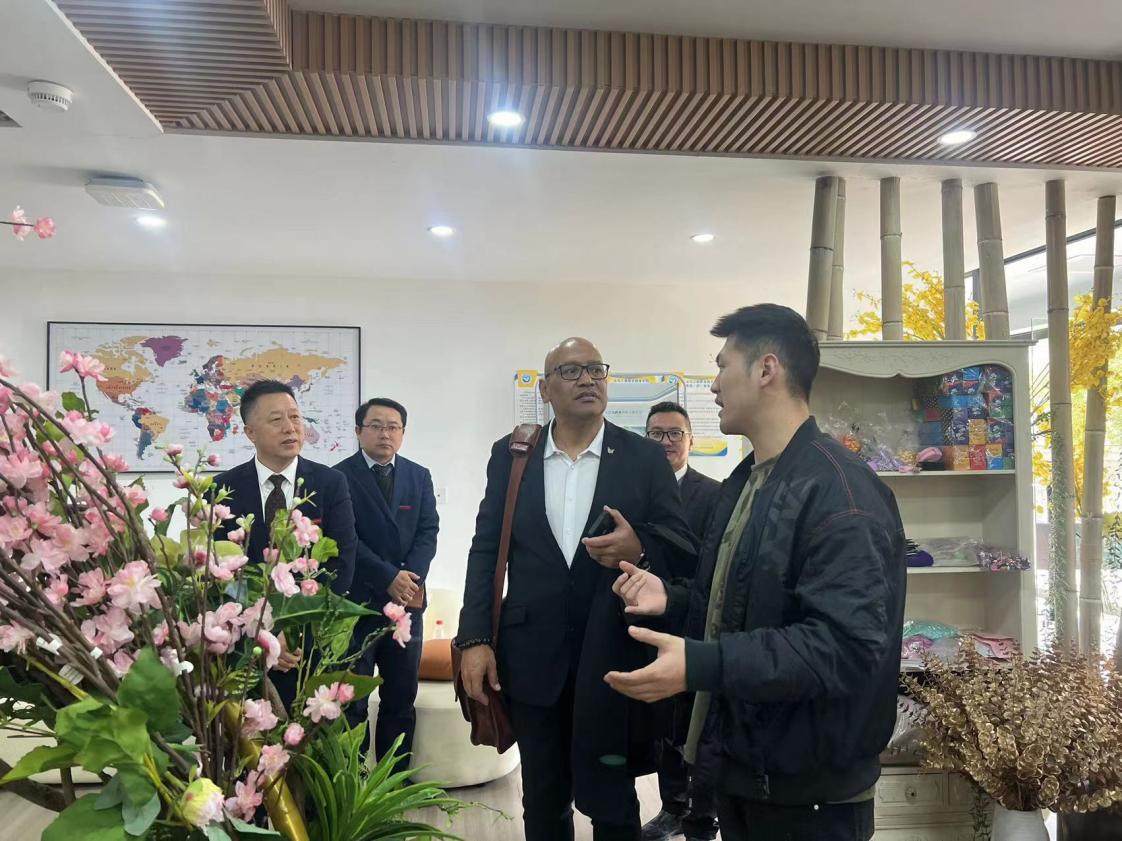 随后,法·托雅校长一行参观了外语外贸学院校内实训基地以及国际商贸城多语种跨境电商直播基地,现场感受义乌“莫名其妙、无中生有、点石成金”的创新创业精神,仔细询问了负责老师跨境直播相关情况,了解我校跨境电商直播产教融合育人模式,对我校正在开展多语种跨境电商直播的学生表示了充分的肯定。